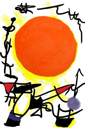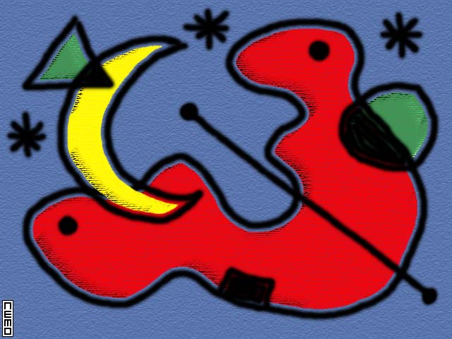 Here is one of his works. Contact me if you wish to display your own Miro-like artwork ("Miro Pseudomorphs") here. The closer your art looks to Miro's art, the better. |
